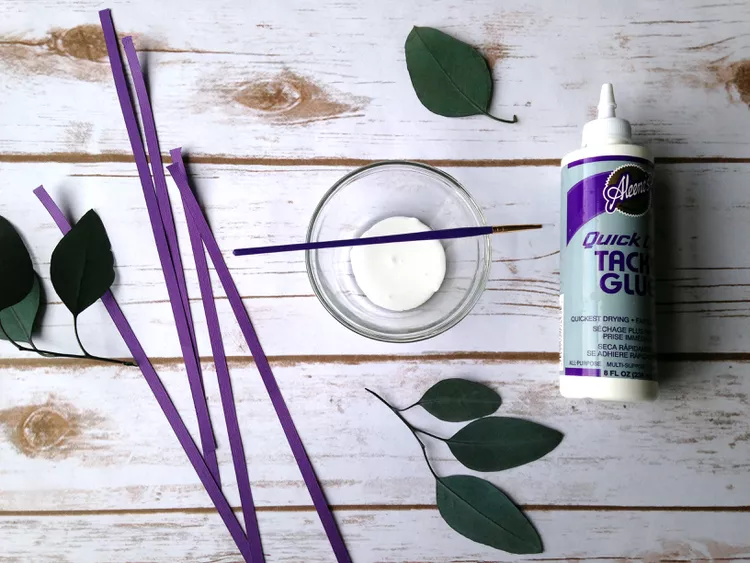 - Place a tiny bit of glue onto the end of the paper strip to hold the shape in place.